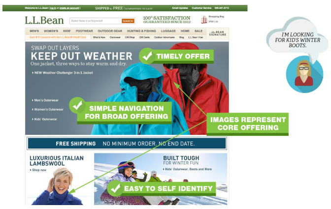 LL Bean có rất nhiều sản phẩm, nhưng hình ảnh gọn gàng và nội dung súc tích giúp bạn dễ dàng lựa chọn dòng sản phẩm chính của họ.