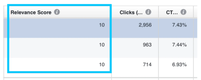 Xếp hạng chất lượng quảng cáo thay thế điểm phù hợp mà Facebook đã giới thiệu vào năm 2015 và đã ngừng hoạt động. Khi quảng cáo hoạt động, điểm liên quan phản ánh mức độ phù hợp của quảng cáo với đối tượng mục tiêu—điều này ảnh hưởng đến chi phí và phân phối.