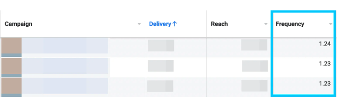 Bạn có thể xem tần suất ở cấp chiến dịch, nhóm quảng cáo hoặc quảng cáo.