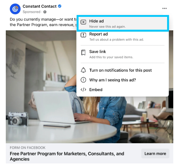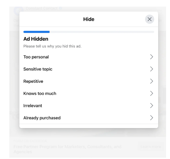 - Mọi người ngừng chú ý đến quảng cáo Facebook của bạn, điều này có thể dẫn đến mức độ tương tác thấp hơn.