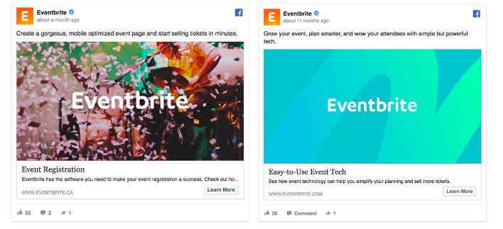 Eventbrite sử dụng nhiều bố cục quảng cáo khác nhau