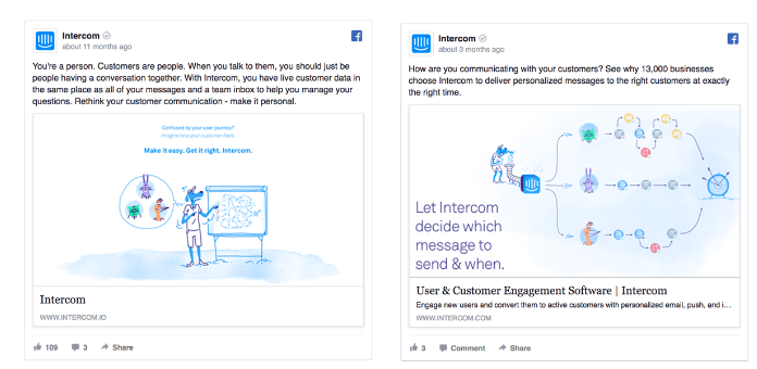 Ngoài việc thử nghiệm thiết kế quảng cáo, độ dài nội dung và ưu đãi, bạn cũng có thể thử nghiệm loại bỏ các hộp văn bản như Intercom đã làm.