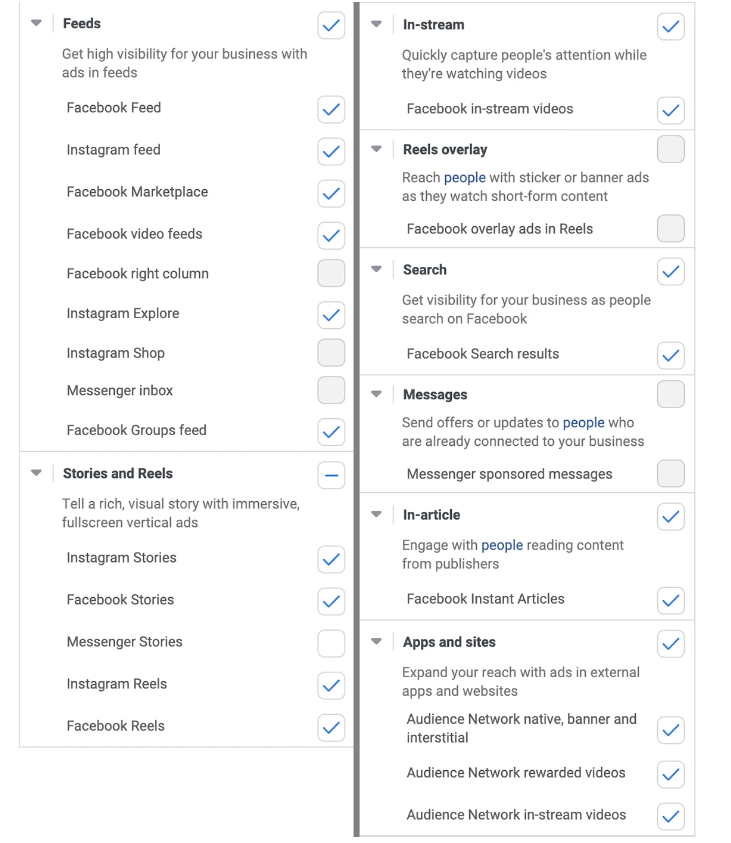 Hiện tại, có 22 vị trí trên Facebook, Instagram, Messenger và Audience Network .