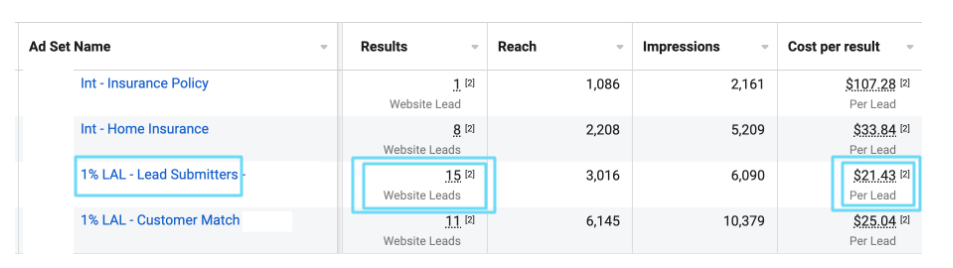 Để chứng minh điều đó, hãy xem kết quả mà chúng tôi đã đạt được cho một trong những khách hàng của mình bằng cách nhắm mục tiêu Tương tự những người gửi khách hàng tiềm năng: