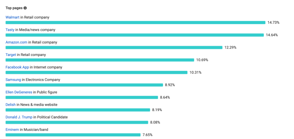 Và trên hết, bạn có thể xem thông tin về đối tượng tiềm năng của mình , bao gồm các trang Facebook hàng đầu mà họ ước tính thích: