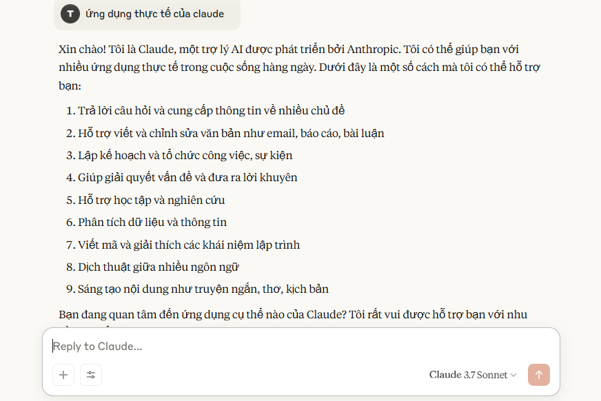 Giáo dục và nghiên cứu: Claude 3 có thể đóng vai trò như một trợ lý học tập, giúp học sinh, sinh viên và giáo viên giải đáp thắc mắc và cung cấp thông tin chuyên sâu.