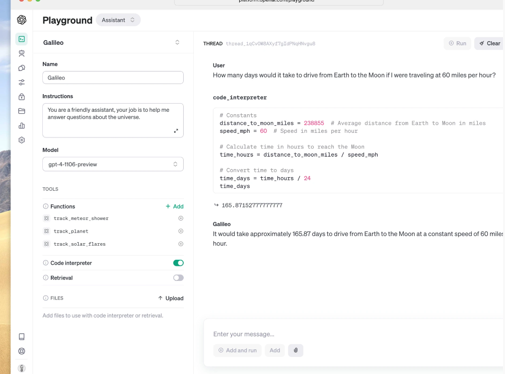 Hôm nay, chúng tôi phát hành API Trợ lý (mở trong cửa sổ mới), bước đầu tiên của chúng tôi hướng đến việc giúp các nhà phát triển xây dựng trải nghiệm giống như tác nhân trong ứng dụng của riêng họ. Trợ lý là AI được xây dựng có mục đích cụ thể, tận dụng kiến thức bổ sung và có thể gọi các mô hình và công cụ để thực hiện các tác vụ. API Trợ lý mới cung cấp các khả năng mới như Trình thông dịch mã và Truy xuất cũng như gọi hàm để xử lý nhiều công việc nặng nhọc mà trước đây bạn phải tự mình thực hiện và cho phép bạn xây dựng các ứng dụng AI chất lượng cao.