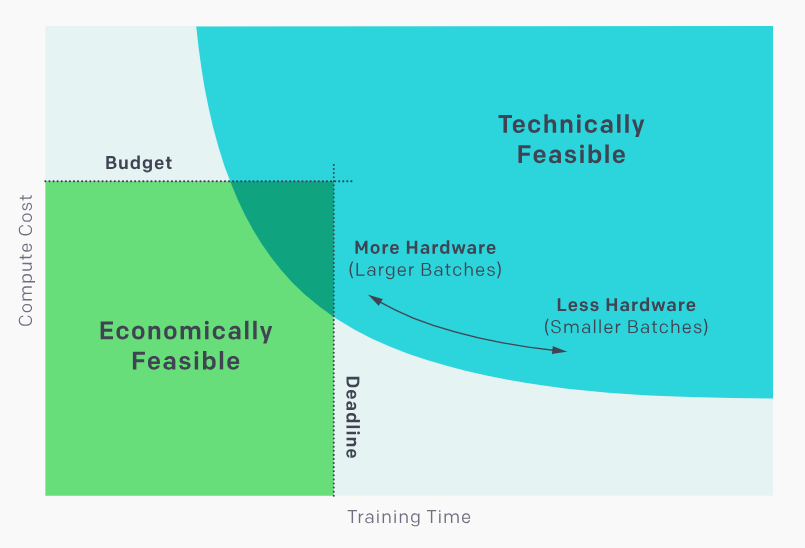 Trong vài năm trở lại đây, các nhà nghiên cứu AI đã ngày càng thành công trong việc tăng tốc quá trình đào tạo mạng nơ-ron thông qua song song dữ liệu, chia nhỏ các lô dữ liệu lớn trên nhiều máy. Các nhà nghiên cứu đã sử dụng thành công các lô có kích thước hàng chục nghìn để phân loại hình ảnh (mở trong cửa sổ mới) và mô hình ngôn ngữ(mở trong cửa sổ mới)và thậm chí hàng triệu cho các tác nhân đời thực (mở trong cửa sổ mới) chơi trò chơi Dota 2. Những lô lớn này cho phép tăng lượng tính toán được đổ hiệu quả vào quá trình đào tạo một mô hình duy nhất và là yếu tố quan trọng thúc đẩy sự tăng trưởng nhanh chóng trong tính toán đào tạo AI (mở trong cửa sổ mới). Tuy nhiên, kích thước lô quá lớn cho thấy lợi nhuận thuật toán giảm nhanh chóng và không rõ tại sao các giới hạn này lại lớn hơn đối với một số tác vụ và nhỏ hơn đối với các tác vụ khác.