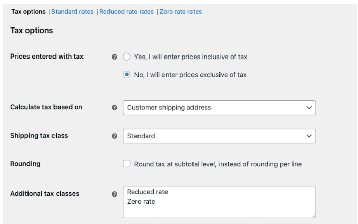 Tiếp theo, hãy chuyển đến tab Thuế và chọn các tùy chọn phù hợp với cửa hàng của bạn.