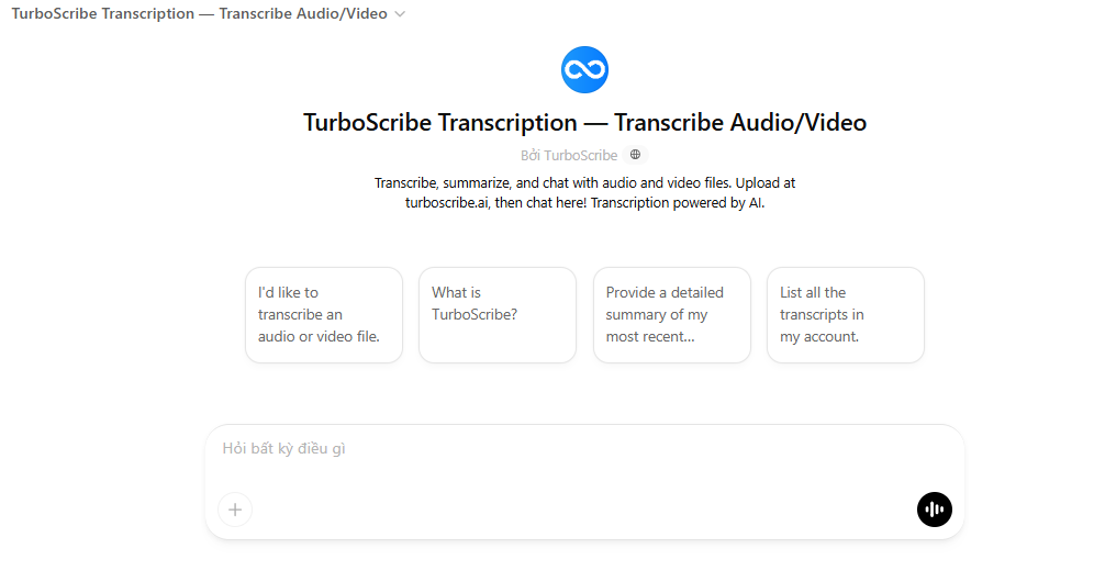 Bài viết này sẽ phân tích các tính năng, lợi ích và ứng dụng của ChatGPT TurboScribe Transcription, giúp bạn hiểu rõ tại sao đây là lựa chọn hoàn hảo cho nhu cầu chuyển đổi giọng nói thành văn bản.
