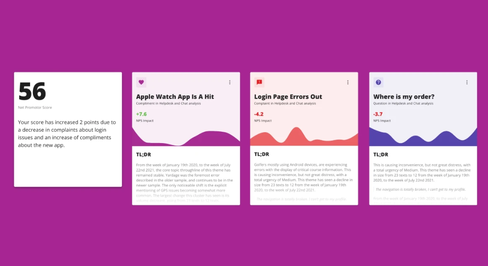 Viable đã giải quyết thách thức này bằng cách tinh chỉnh LLM của OpenAI (mở trong cửa sổ mới) để cung cấp thông tin chi tiết nhanh chóng và chính xác từ các tương tác hỗ trợ khách hàng đến các bản ghi chép đã ghi và mọi thứ ở giữa, sử dụng GPT-4 để phân tích dữ liệu định tính ở quy mô vượt quá các kỹ thuật và hiệu suất hiện tại. Nền tảng của Viable cung cấp cho các công ty thông tin chi tiết có thể hành động để cải thiện Điểm khuyến khích người dùng ròng (NPS), giảm khối lượng phiếu hỗ trợ và cung cấp thông tin tốt hơn cho lộ trình sản phẩm của họ, đồng thời tiết kiệm chi phí hoạt động.