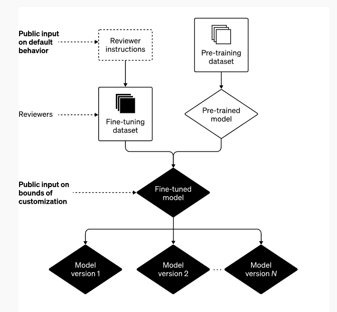 Ý kiến đóng góp của công chúng về mặc định và giới hạn cứng . Một cách để tránh sự tập trung quyền lực không đáng có là trao cho những người sử dụng hoặc bị ảnh hưởng bởi các hệ thống như ChatGPT khả năng tác động đến các quy tắc của các hệ thống đó.