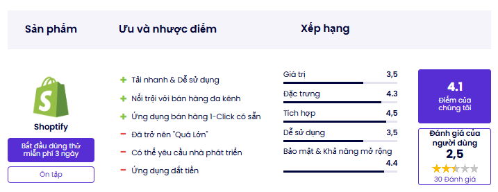 Các ứng dụng có sẵn để thêm các tính năng không có sẵn trong Shopify . Mặc dù nhiều ứng dụng có sẵn miễn phí, nhưng có khá nhiều ứng dụng yêu cầu thêm chi phí. Khi bạn cân nhắc những ứng dụng đó và số tiền mà chúng mang lại cho tổng chi phí hàng tháng của bạn, có thể bạn nên so sánh Shopify với BigCommerce hoặc Volusion để đảm bảo rằng nó đáp ứng nhu cầu của bạn với mức giá phải chăng nhất.