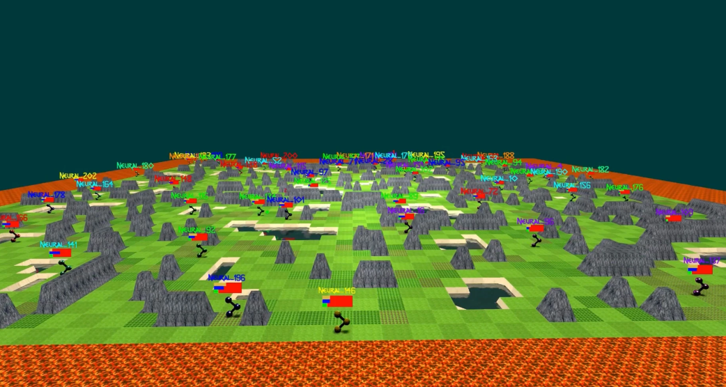 Chúng tôi đang phát hành một MMO thần kinh (mở trong cửa sổ mới), một môi trường trò chơi đa tác nhân khổng lồ dành cho các tác nhân học tăng cường. Nền tảng của chúng tôi hỗ trợ một số lượng lớn các tác nhân thay đổi trong một nhiệm vụ liên tục và mở. Việc đưa vào nhiều tác nhân và loài dẫn đến việc khám phá tốt hơn, hình thành ngách khác biệt và năng lực tổng thể cao hơn.