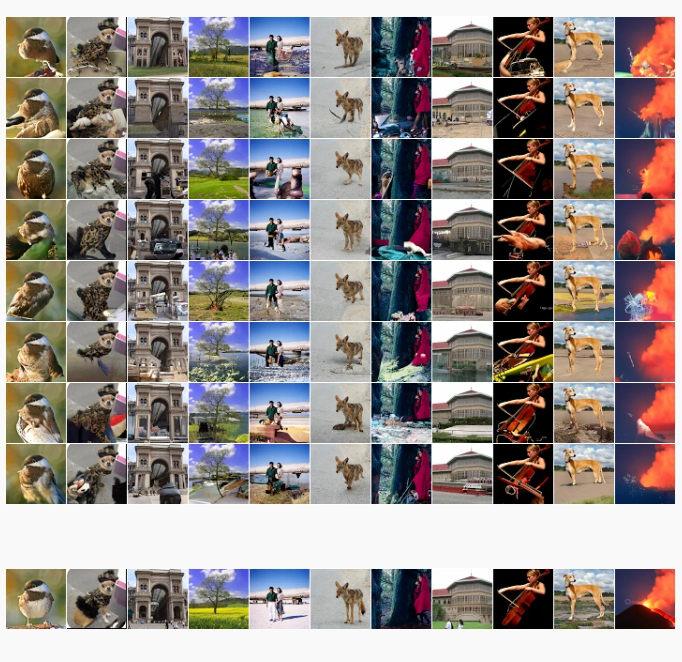 Các máy biến áp sử dụng sự chú ý thưa thớt dường như có khái niệm về cấu trúc toàn cầu, có thể được đánh giá định tính bằng cách xem xét các hình ảnh hoàn thiện. Ở đây chúng ta hình dung một mô hình được đào tạo trên 64×6464×64Hình ảnhNet: