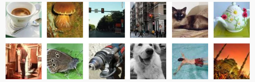 Hãy làm cho điều này cụ thể hơn bằng một ví dụ. Giả sử chúng ta có một số bộ sưu tập hình ảnh lớn, chẳng hạn như 1,2 triệu hình ảnh trong ImageNet tập dữ liệu (nhưng hãy nhớ rằng cuối cùng đây có thể là một bộ sưu tập lớn các hình ảnh hoặc video từ internet hoặc rô-bốt). Nếu chúng ta thay đổi kích thước mỗi hình ảnh để có chiều rộng và chiều cao là 256 (như thường làm), tập dữ liệu của chúng ta là một 1,200,000x256x256x3khối pixel lớn (khoảng 200 GB). Sau đây là một số hình ảnh ví dụ từ tập dữ liệu này: