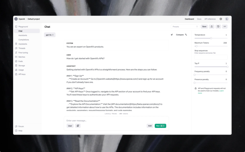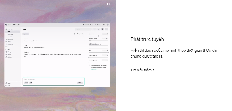 Khám phá các mô hình và API của chúng tôi trong Playground mà không cần viết một dòng mã nào.