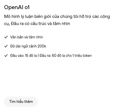 | Tiêu chí | OpenAI o1 | GPT-4-turbo | GPT-4 |