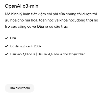 Một số điểm nổi bật của OpenAI o3-mini: