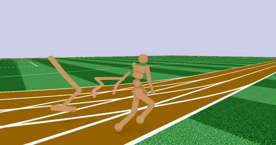 Cờ hình người và HumanoidFlagrunHarder. Các bước đi không nhanh và trông tự nhiên như những bước đi mà chúng ta thấy từ người máy thông thường, nhưng các chính sách này có thể phục hồi từ nhiều tình huống và chúng biết cách điều khiển. Bản thân chính sách này vẫn là một perceptron nhiều lớp, không có trạng thái nội bộ, vì vậy chúng tôi tin rằng trong một số trường hợp, tác nhân sử dụng cánh tay của mình để lưu trữ thông tin.