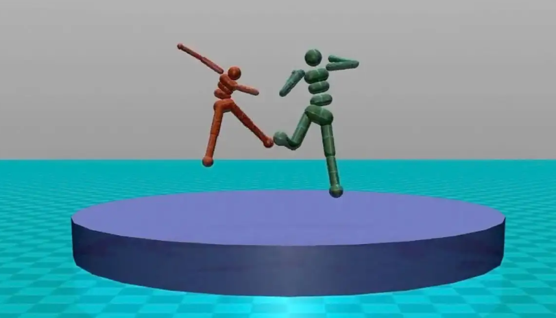 Các tác nhân này cũng thể hiện khả năng học chuyển giao, áp dụng các kỹ năng đã học được trong một bối cảnh để thành công trong một bối cảnh khác chưa từng thấy trước đây. Trong một trường hợp, chúng tôi đã lấy tác nhân được đào tạo về nhiệm vụ đấu vật sumo tự chơi và đối mặt với nhiệm vụ đứng trong khi bị nhiễu loạn bởi các lực "gió". Tác nhân đã cố gắng giữ thẳng người mặc dù không bao giờ nhìn thấy môi trường có gió hoặc quan sát các lực gió, trong khi các tác nhân được đào tạo để đi bộ bằng cách sử dụng học tăng cường cổ điển sẽ ngã ngay lập tức.
