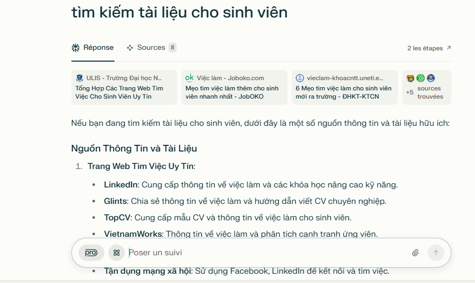 Sử dụng Perplexity AI để nghiên cứu thông tin, tìm kiếm dữ liệu và thu thập nguồn tài liệu đáng tin cậy