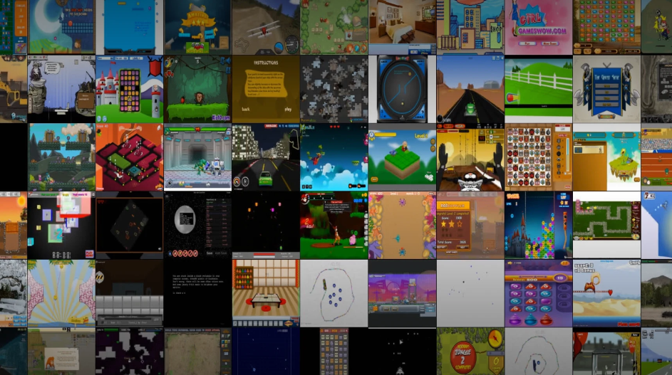 Chúng tôi chuyển sang các trò chơi Flash như một điểm khởi đầu để mở rộng Vũ trụ—chúng rất phổ biến trên Internet, thường có đồ họa phong phú hơn Atari, nhưng vẫn đơn giản. Cho đến nay, chúng tôi đã sàng lọc hơn 30.000 trò chơi và ước tính có nhiều hơn một bậc độ lớn.